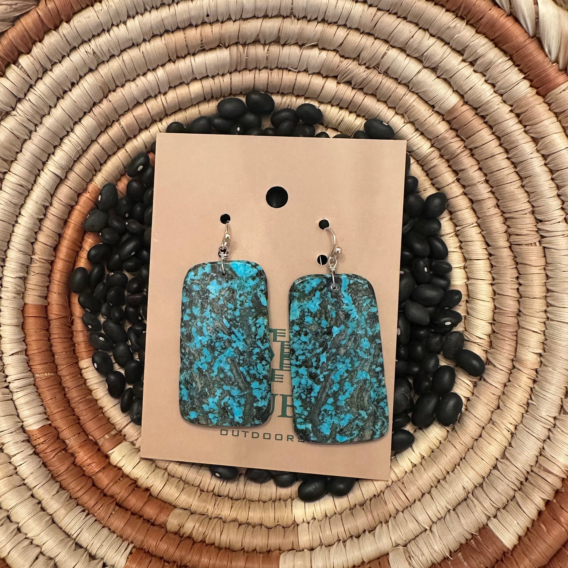 The slab earring is all about those stones. This batch is so good with all the grey and tan matrix! SO good! These hang 2 1/2 inches long and 1 1/4 wide at the bottom.