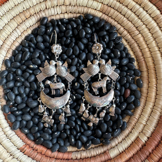 Donkeys and birds, oh my! These are classic Jose Federico filigree, made by artisans in Mexico. They are light as a feather! They measure 3 3/4 from the top of the ear wire and 1 3/4 wide.