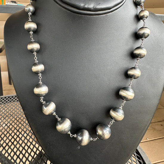 Ever need a little space? Well, we do! This Navajo pearl neclace is graduated and spaced out to add the perfect amount of interest to your stack! 22 inches long.