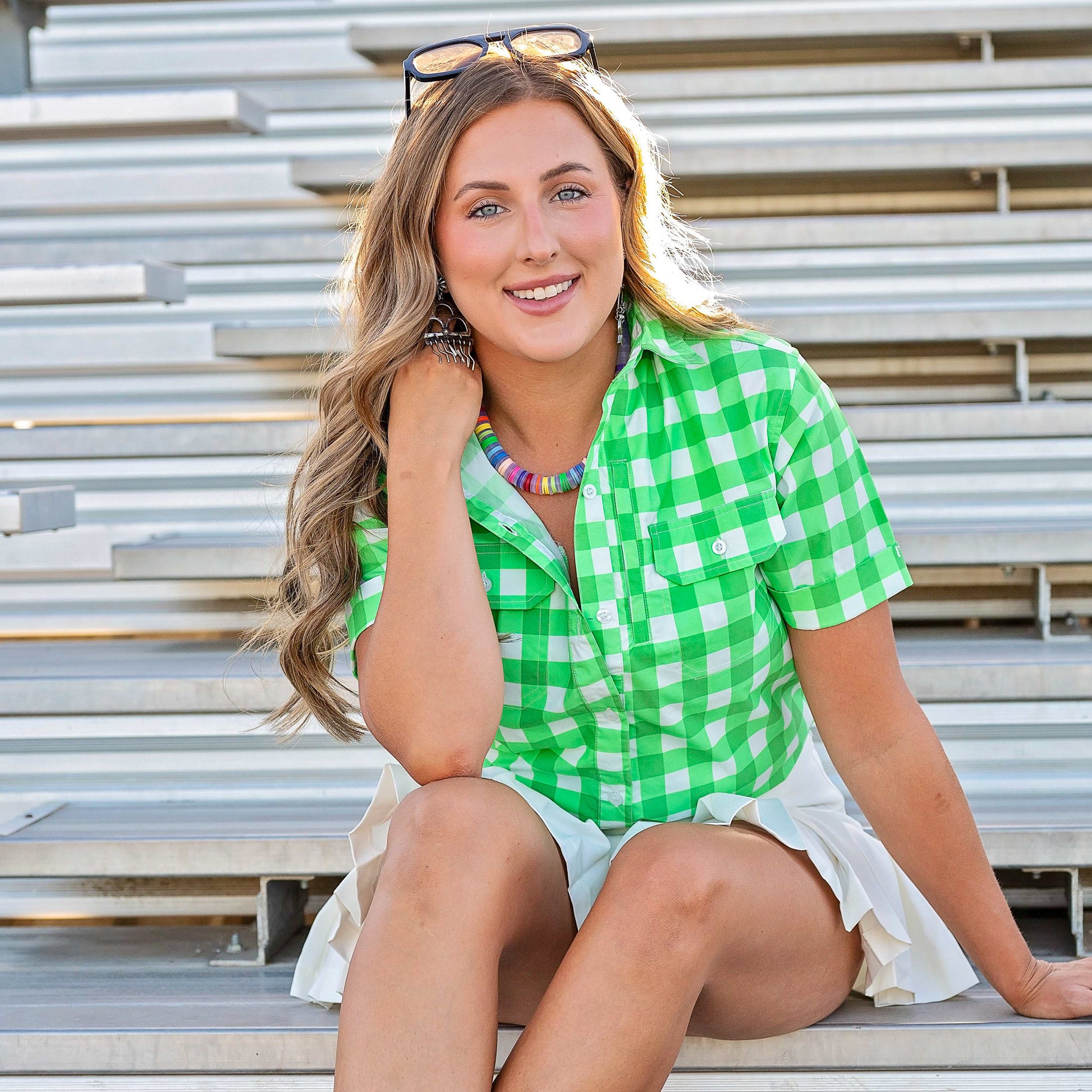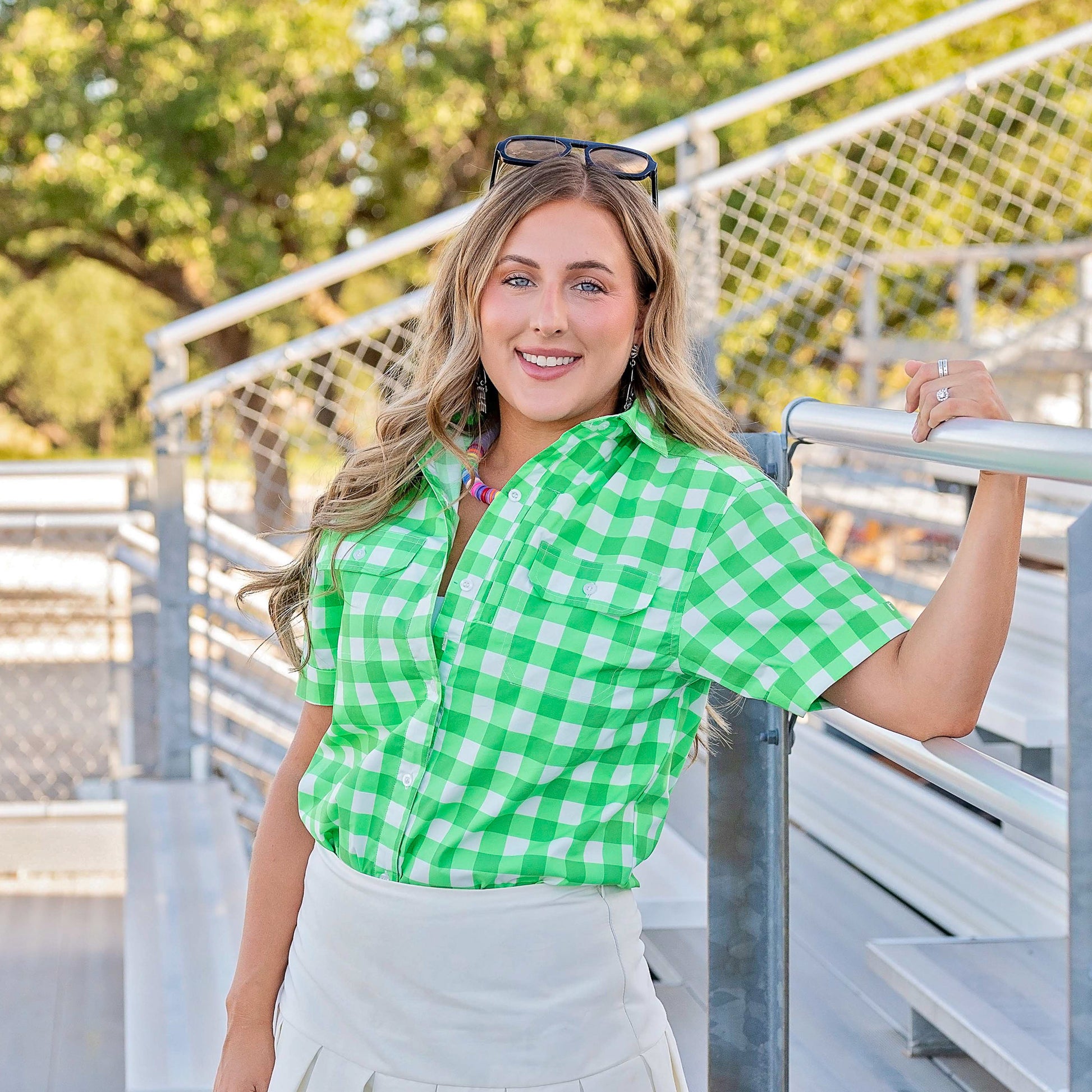 Meet your new game day shirt! Our Women’s Short Sleeve Fishing Shirt in Green Check blends bold school spirit with flattering, functional design—so you can rep your team in comfort and style.