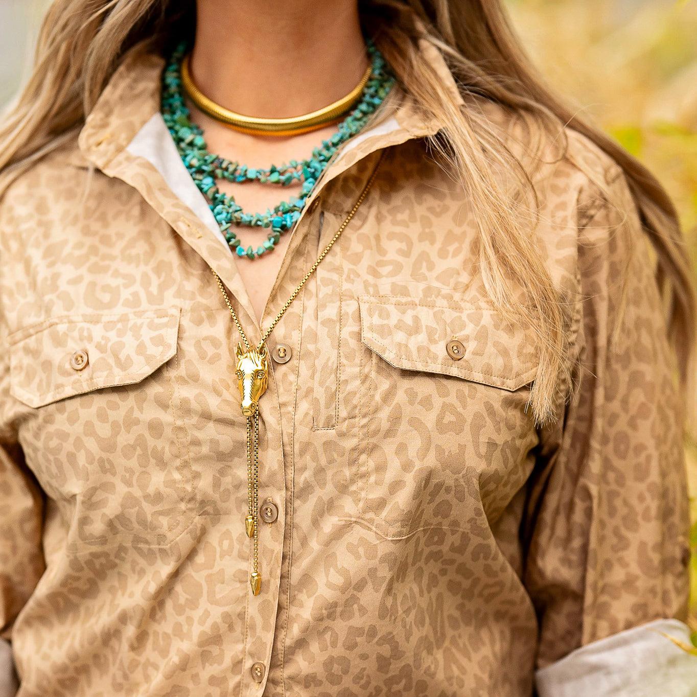 Meet your new favorite go-anywhere, do-anything shirt. Our Women's Long Sleeve Fishing Shirt in Leopard blends high-performance features with a flattering, feminine fit—because you deserve outdoor apparel that actually fits your life and your style.